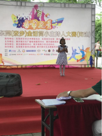 7月16日,在东莞香市动物园举行的东莞(寮步)第三届“香市之星”金话筒小主持人大赛(海选)已经圆满结束。第三届“香市之星”金话筒小主持大赛需经过三个环节的自我展示,首先要求选手个性登场后先做自我介绍,然后根据自身特长展开自定话题、情景的模拟主持,最后是才艺秀。