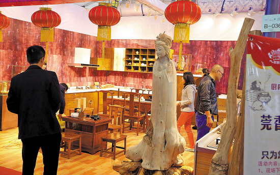 1000多个展商中,香博会主会场B区036号展馆无疑是特别的,吸引了不少市民的眼球,因为该展区商家欧景乐厨卫有限公司展出了国内首套沉香橱柜。橱柜也有沉香的?据欧景乐总经理区浩景介绍,该套橱柜名为“莞香缘”,女儿香是莞香中的极品,香农家的女儿在少女时代就钟情莞香,把上品莞香藏于衣袖中。出嫁到了婆家,就可以通过“莞香缘”橱柜,把女儿香引入厨房,让莞香走进整个人生。欧景乐作为东莞寮步本土的企业,用莞香文化来塑造产品,真正体现了东莞特色,让厨房飘香,让橱柜更具文化内涵。