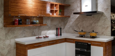 但其实不锈钢的台面并不是说完全整体都是不锈钢的,里面还具有防水板,然后在外面加上一层不锈钢材质,它的质地虽然很坚固容易清洁,但是如果油烟多的地方,同时使用时间长了以后也会出现一些刮花现象。